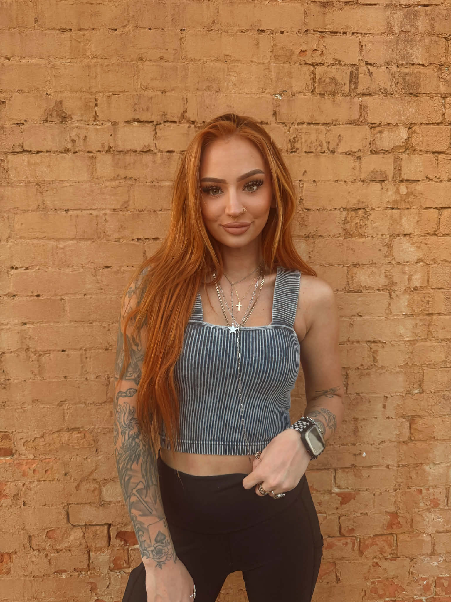 Acid Ribbed Seamless Tank - Navy *Door Buster*