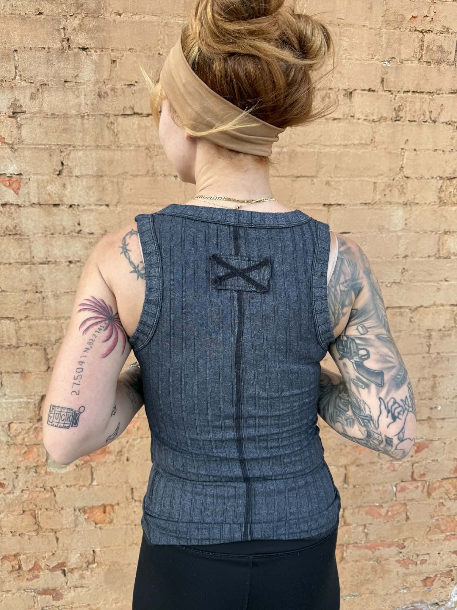 Acid Wash Henley Tank - Ash Black *Door Buster*