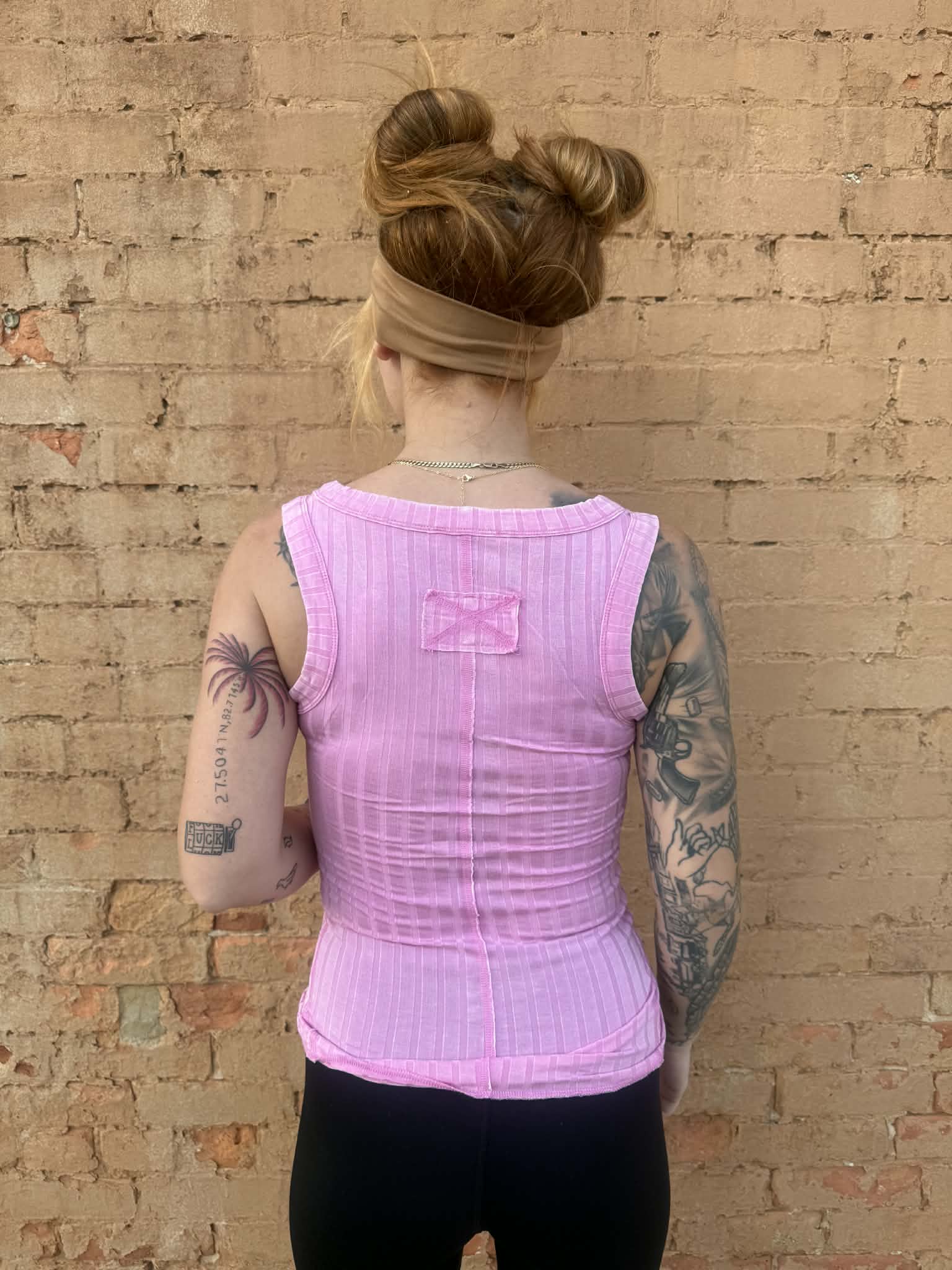Acid Wash Snap Henley Tank - Candy Pink *Door Buster*