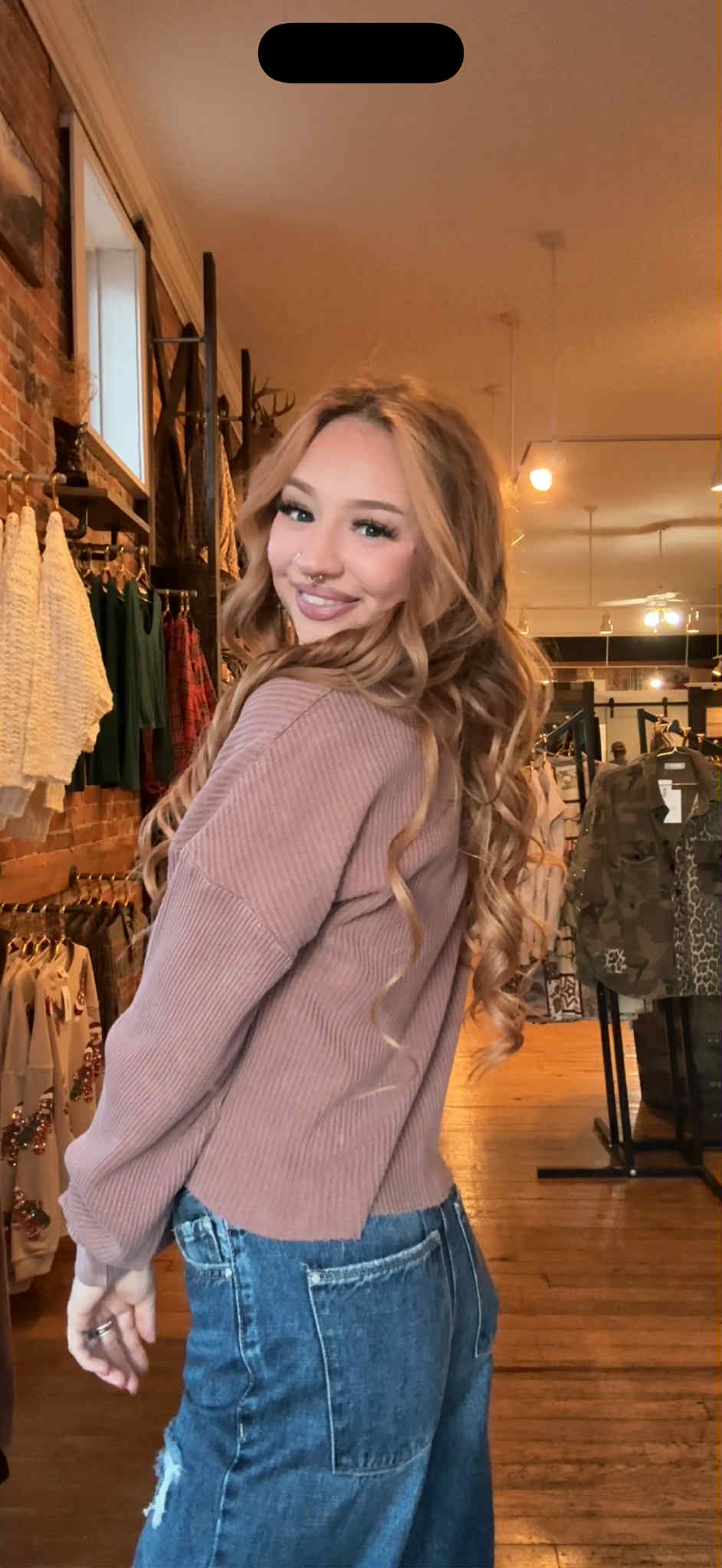 Designed with a relaxed cropped fit and long sleeves, it strikes the perfect balance between comfy and flattering. Whether you're lounging at home, layering under flannels, or styling it with denim and boots, this top brings effortless, rustic charm.