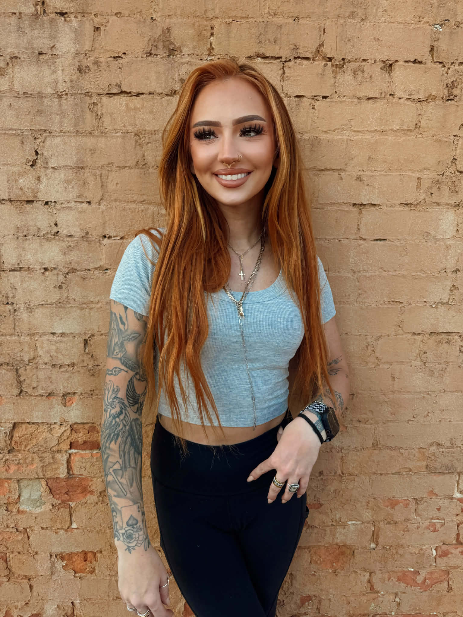 Baby Ribbed Crop Top - Grey *Door Buster*