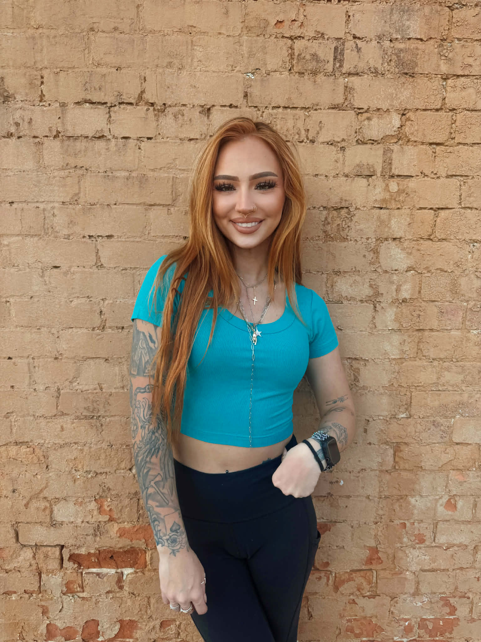 Baby Ribbed Crop Top - Teal *Door Buster*