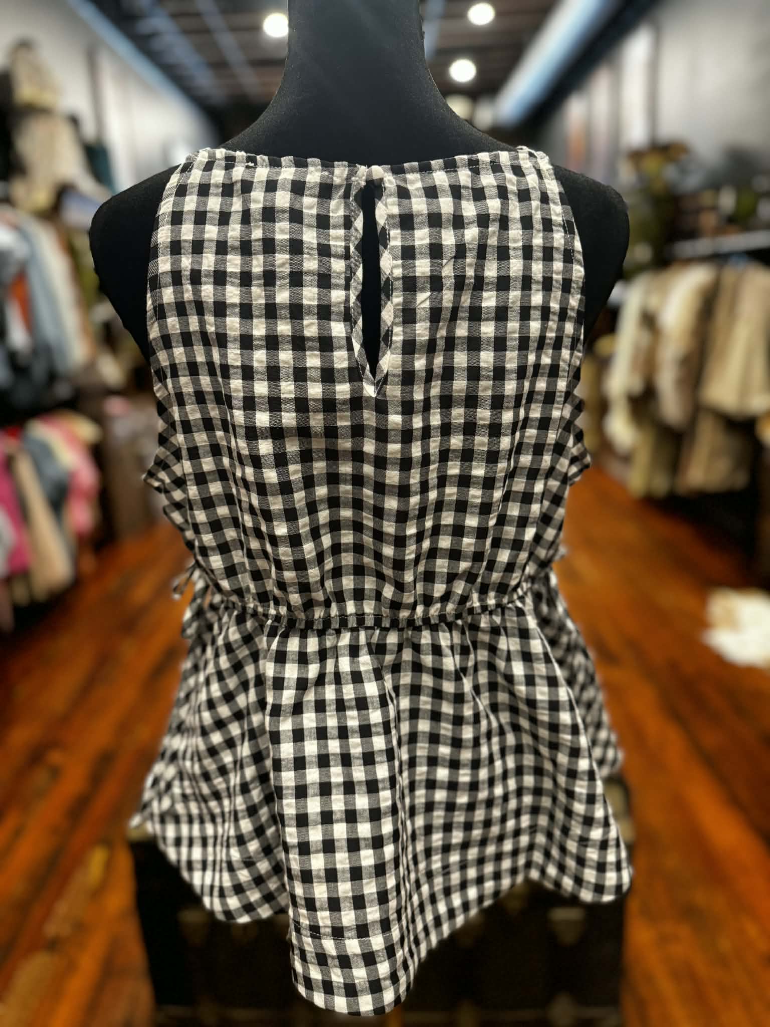Sweet, feminine, and effortlessly wearable, the Cottage Charm Peplum Tank Top features a classic black and white gingham print with delicate bows at both sides of the waist. Designed with a flattering peplum silhouette and high neckline, this tank top is perfect for pairing with jeans, skirts, or shorts for an everyday boutique-inspired look.