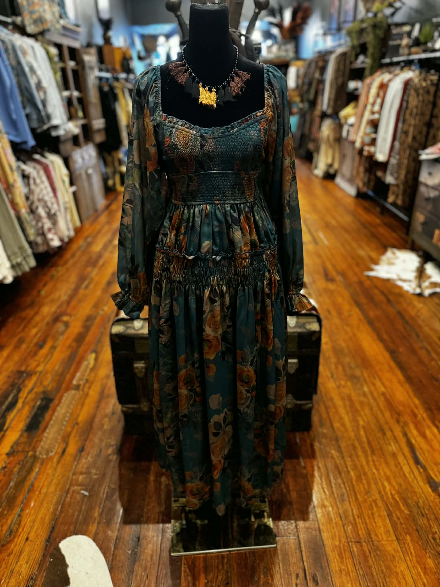 A soft, romantic silhouette meets rich earthy tones in our Pine Meadow Floral Dress. Designed in a deep pine green with a delicate floral print, this dress features flowy sleeves, a flattering feminine shape, and easy all-day comfort thanks to its lightweight 100% polyester fabric. Perfect for brunch, photos, date nights, or fall events—effortless beauty in one simple piece.