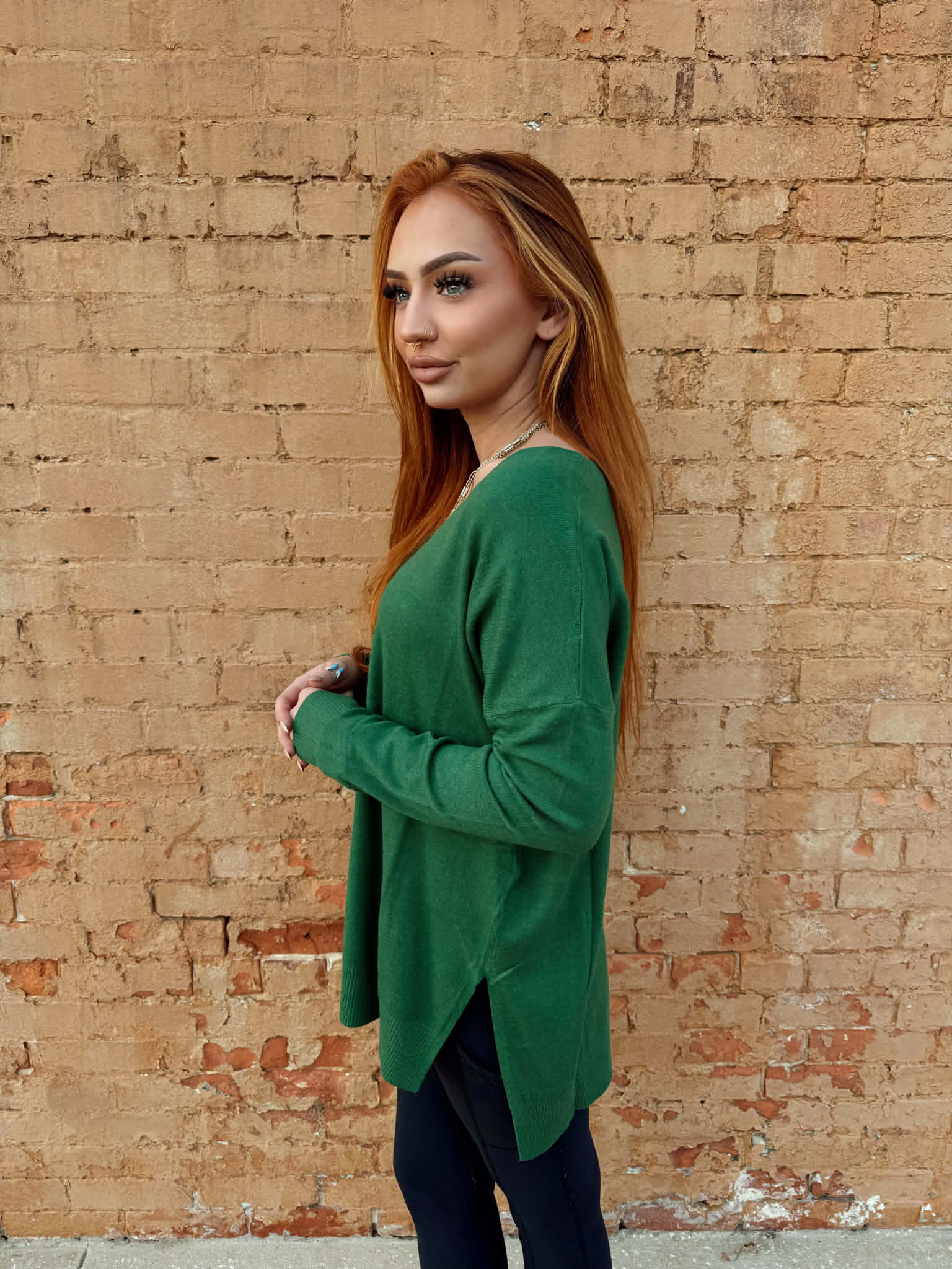 Hi-low Hem V-neck Center Seam Sweater - Green * Door Buster*