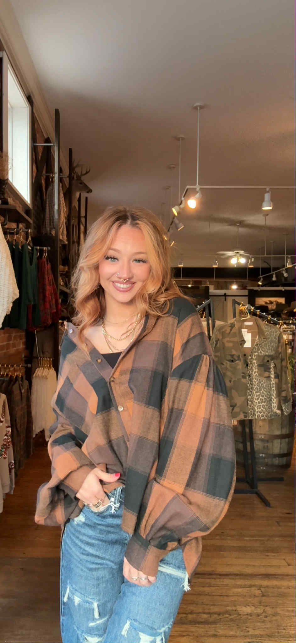 Leaves & Lattes - Camel Plaid Flannel