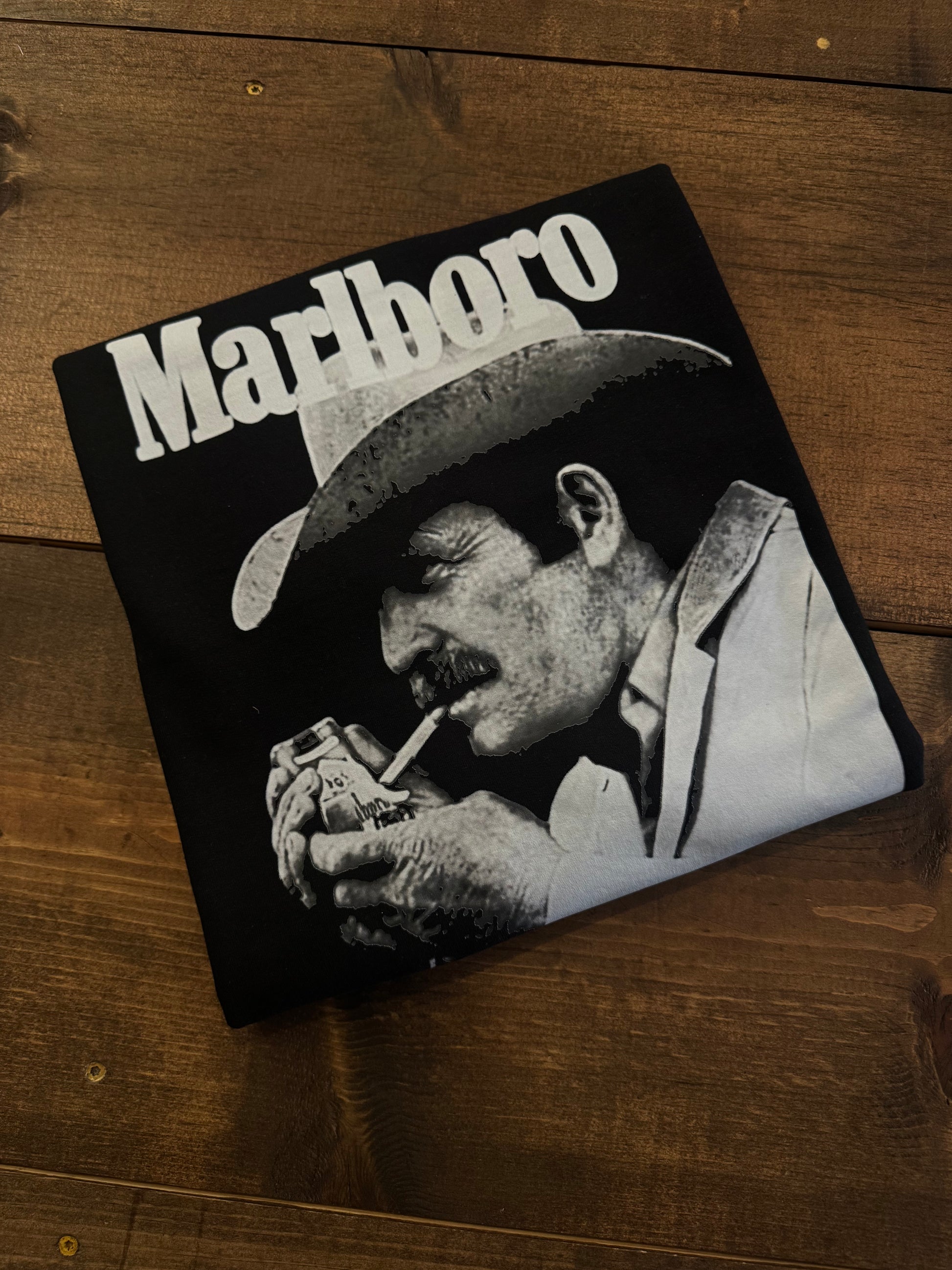 Bold and effortlessly cool, the Marlboro Black Graphic Crewneck delivers a vintage-inspired statement with everyday comfort. Designed in a classic black colorway, this crewneck features a standout graphic front paired with a relaxed, easy fit. Crafted from a soft cotton-blend fleece, it’s perfect for layering or wearing solo through cooler days.