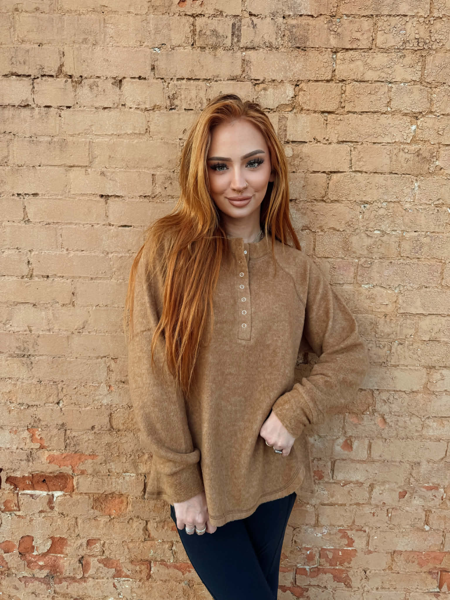 Oversized Henley Sweater - Deep Camel *Door Buster*