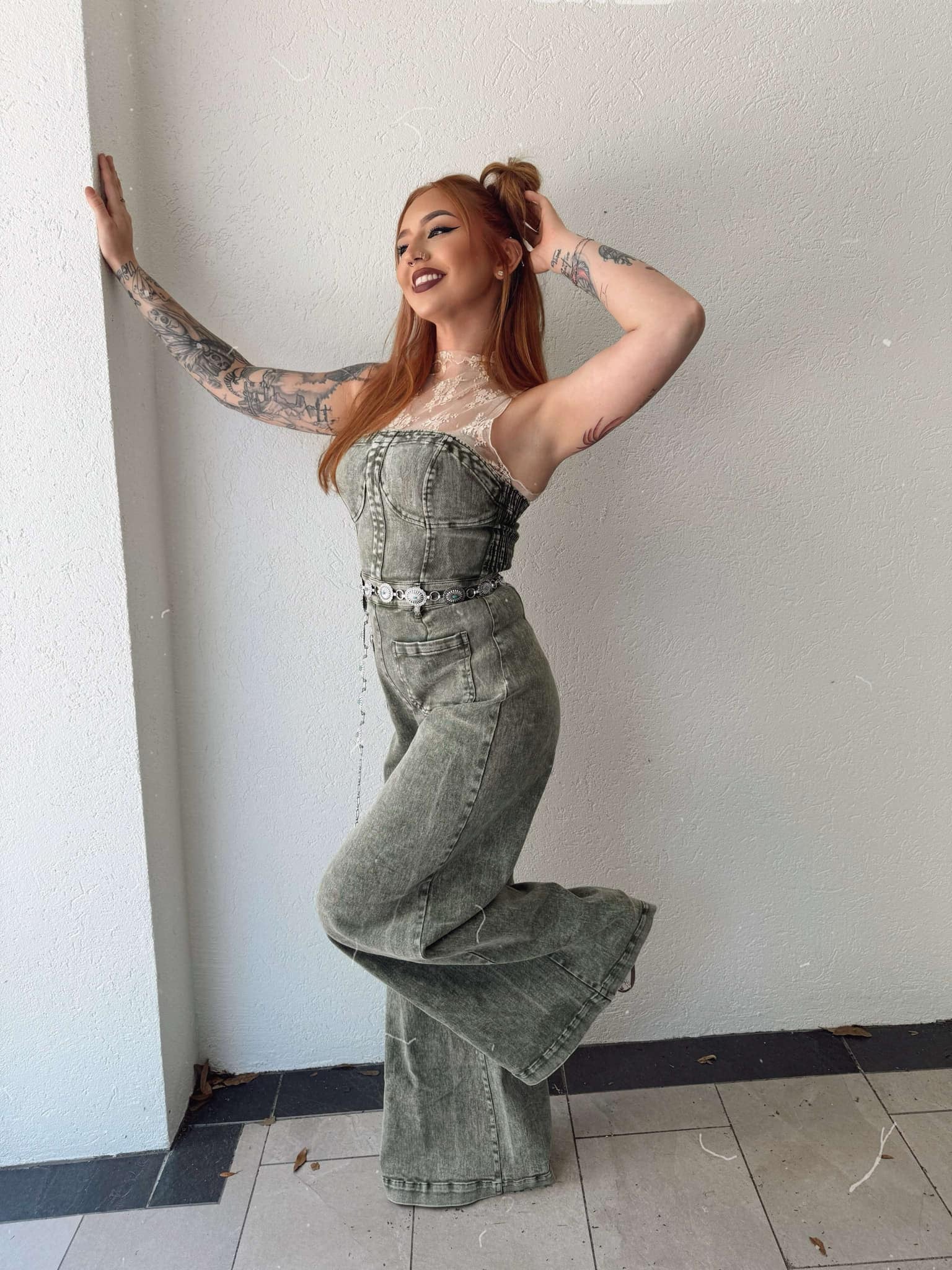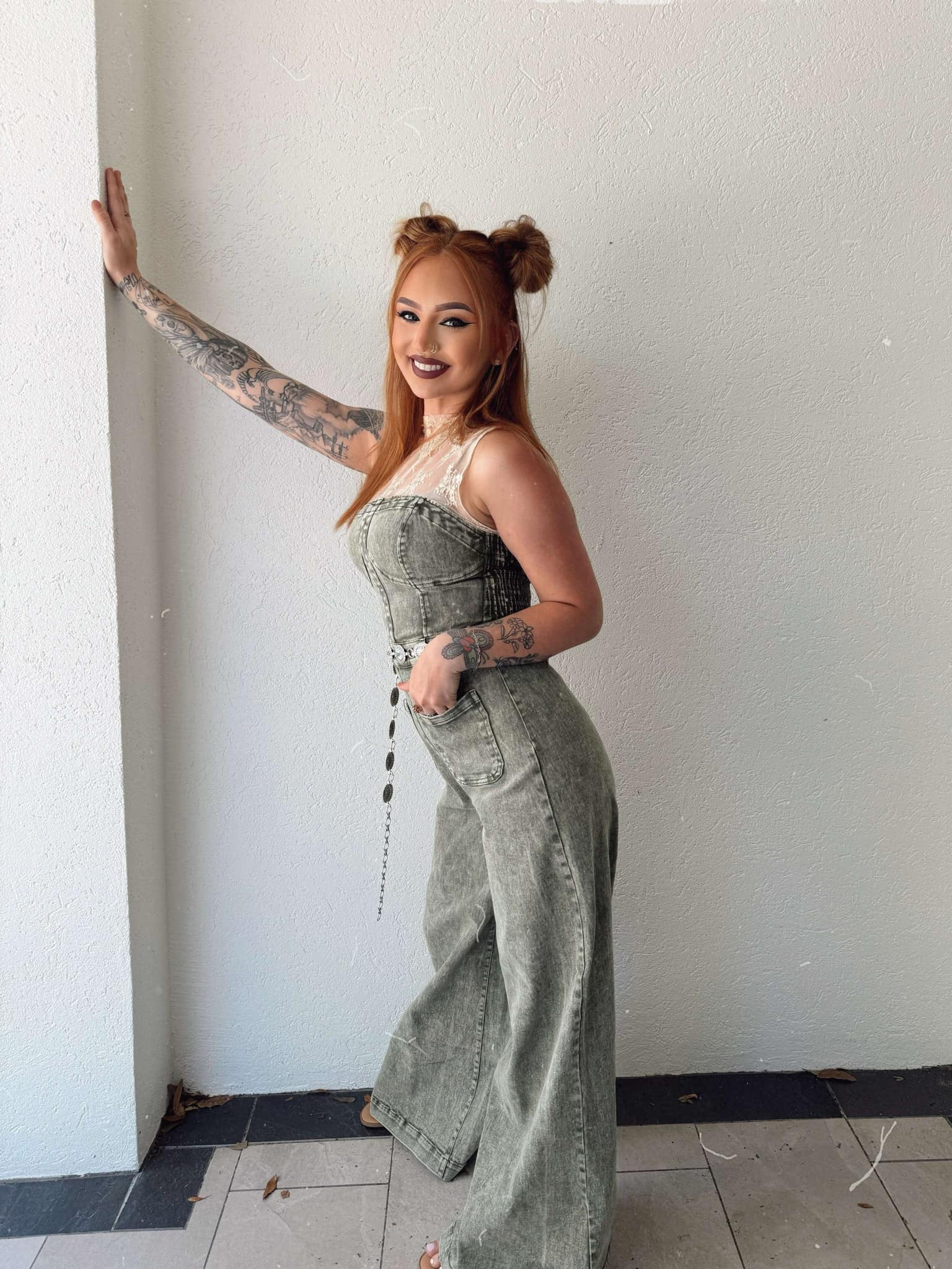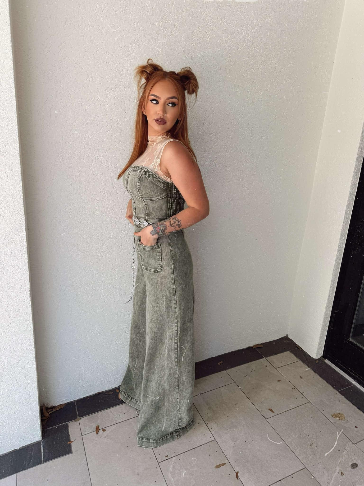 Rustic Charm - Olive Denim Jumpsuit
