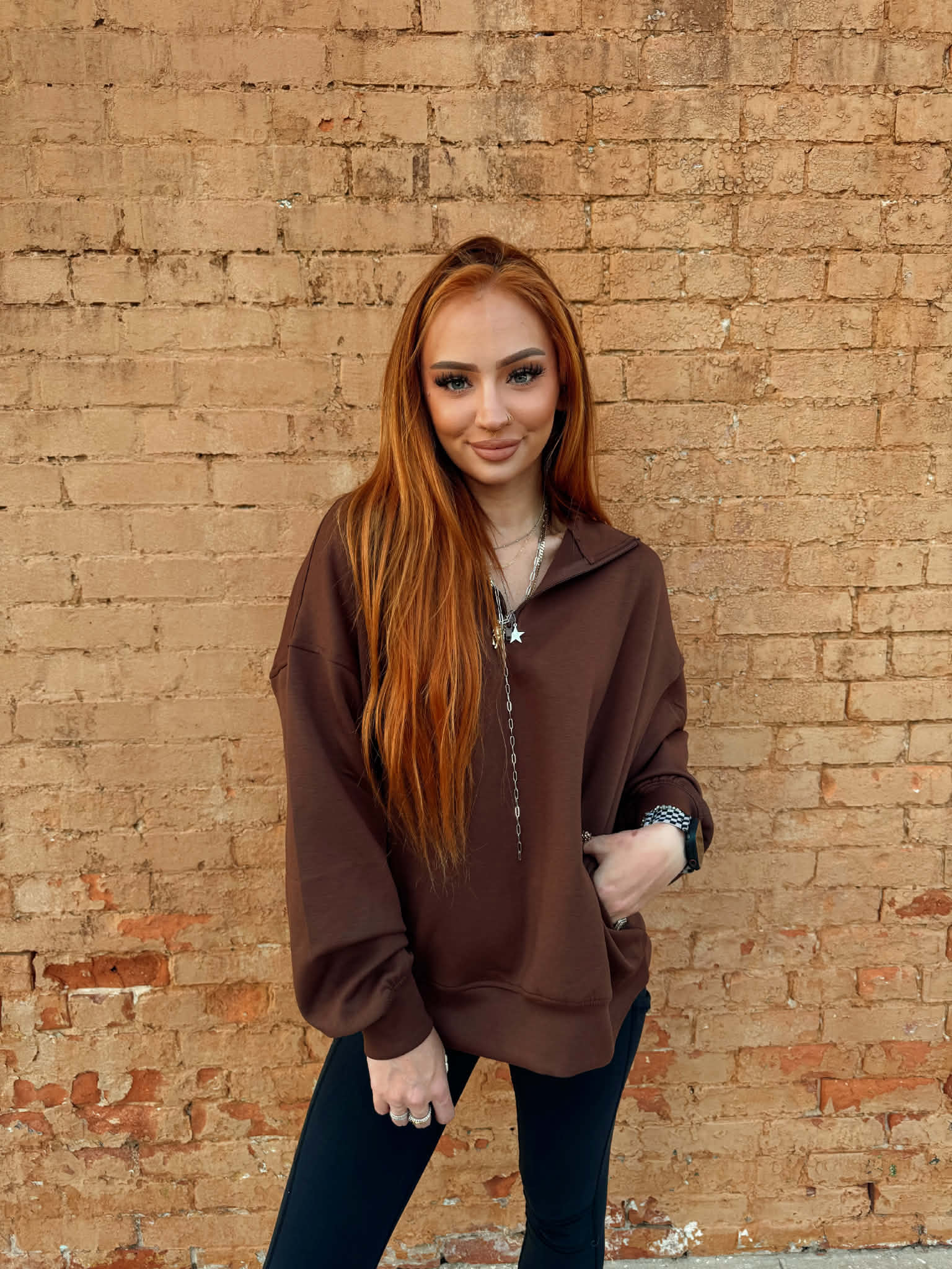Scuba Half Zip Pullover - Brown *Door Buster*
